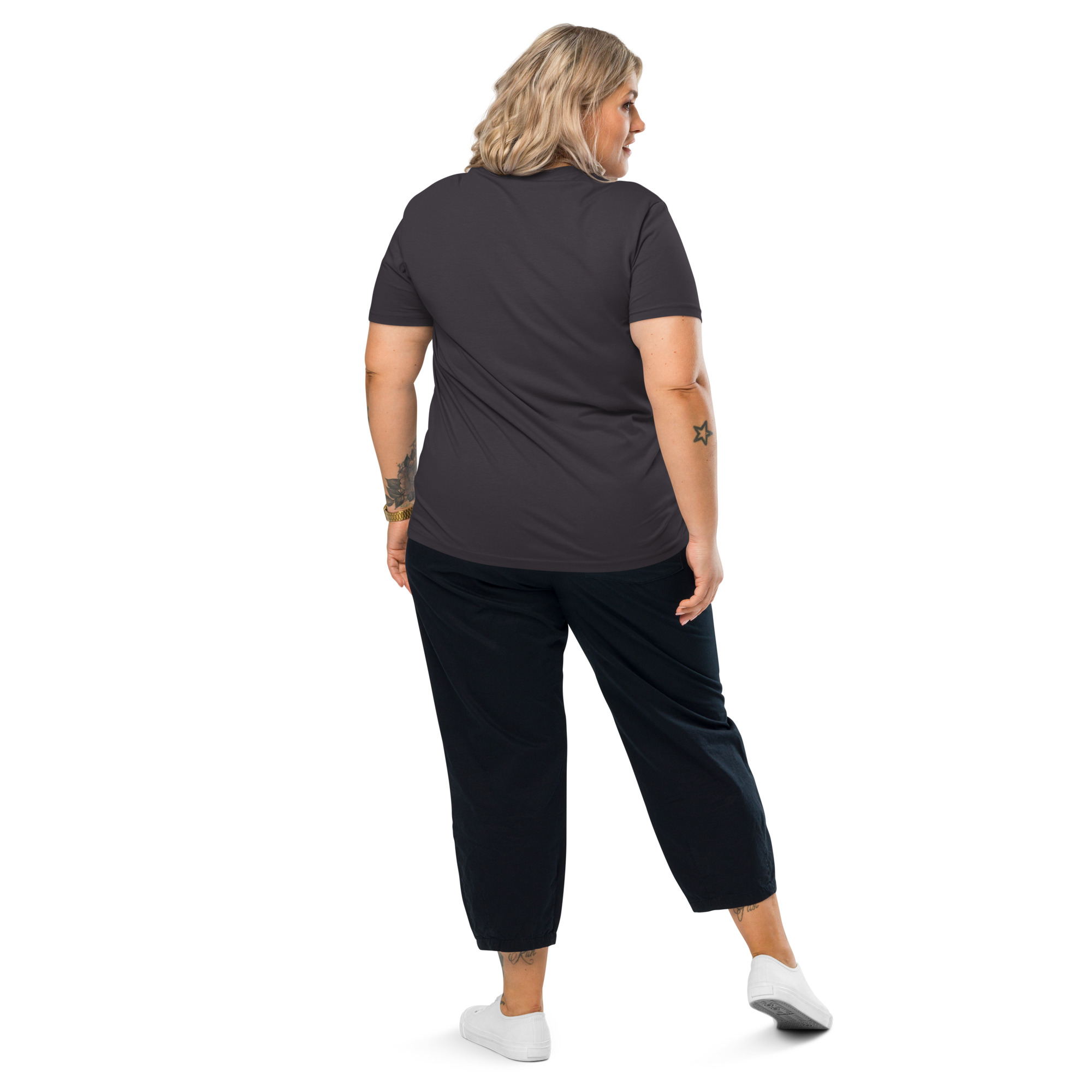 Crafted for comfort and conscience, this unisex t-shirt is made from 100% organic ring-spun cotton, offering a medium fit that feels super comfy against the skin. The fabric is not only soft and durable but also deeply eco-friendly, holding certifications from GOTS (Global Organic Textile Standard) and OCS (Organic Content Standard). It is also OEKO-TEX® STANDARD 100 certified and PETA-Approved Vegan, ensuring it aligns with your values. The construction features single jersey fabric with set-in sleeves, a ribbed collar, and double-needle stitching for lasting quality.