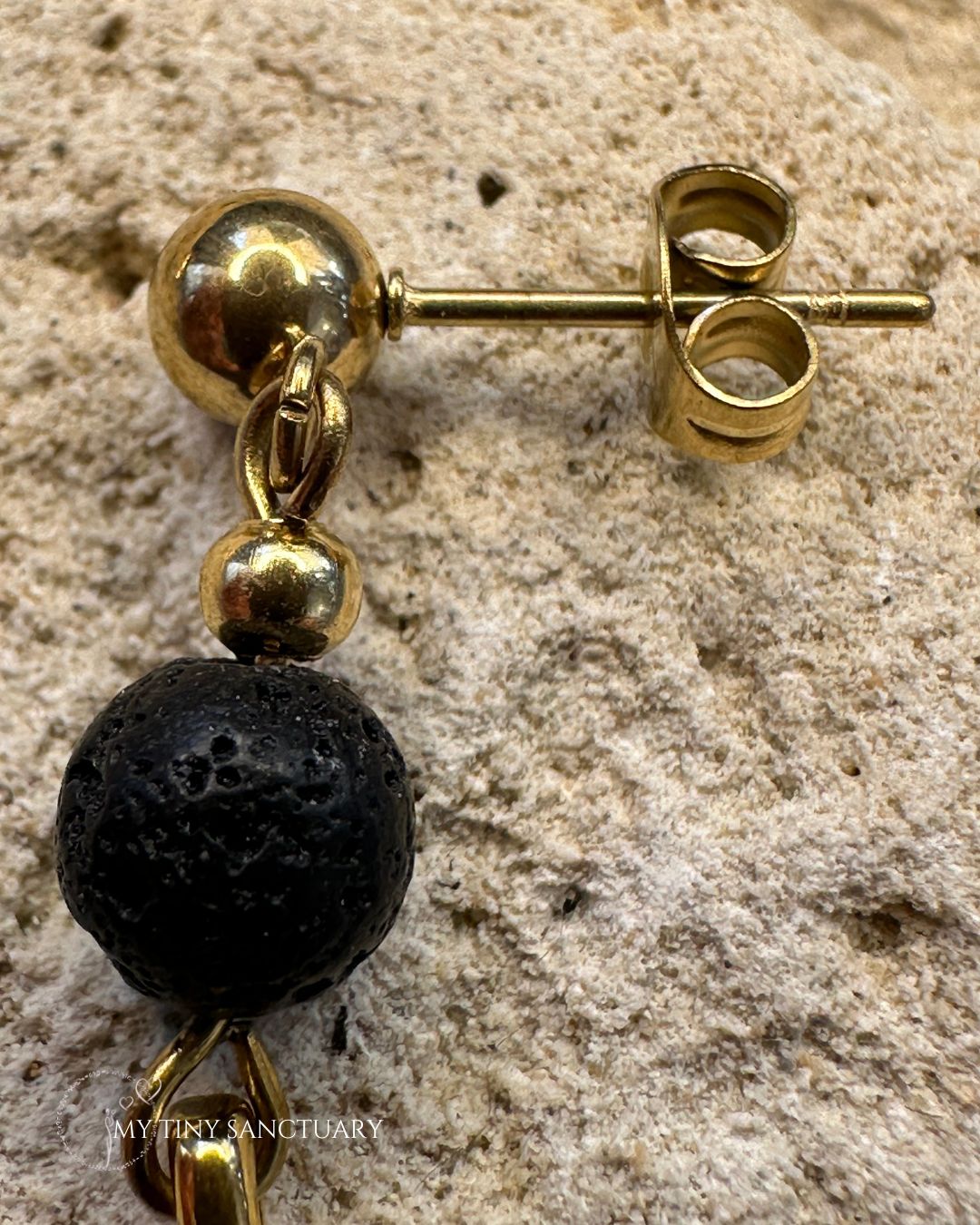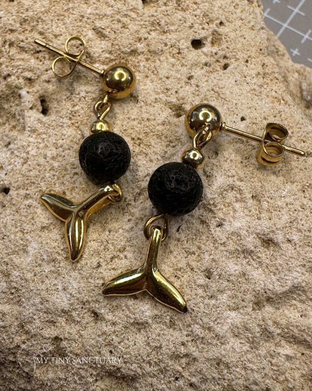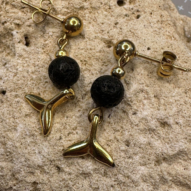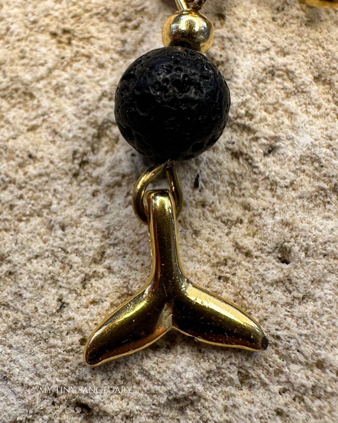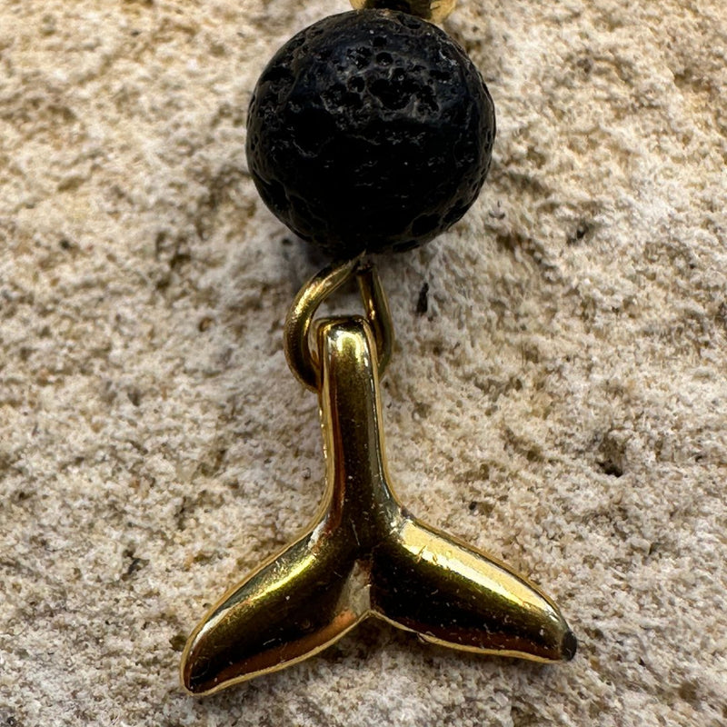 This Dolphin Gold Tale with black lava stone is a lovely tribute to the Aegean and Mediteran Sea creatures and minerals.
