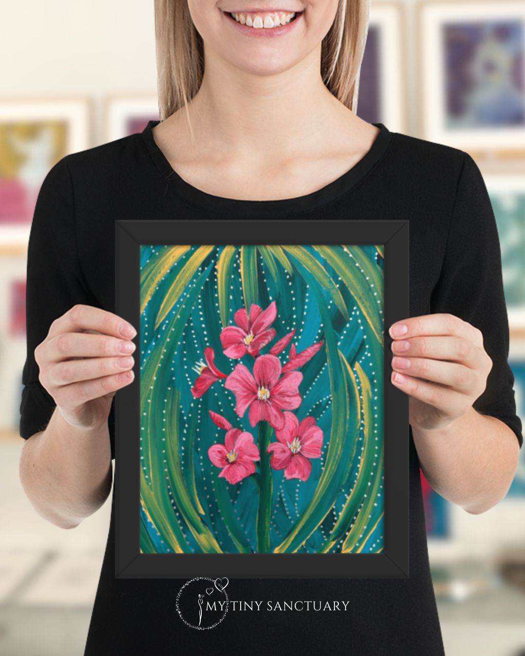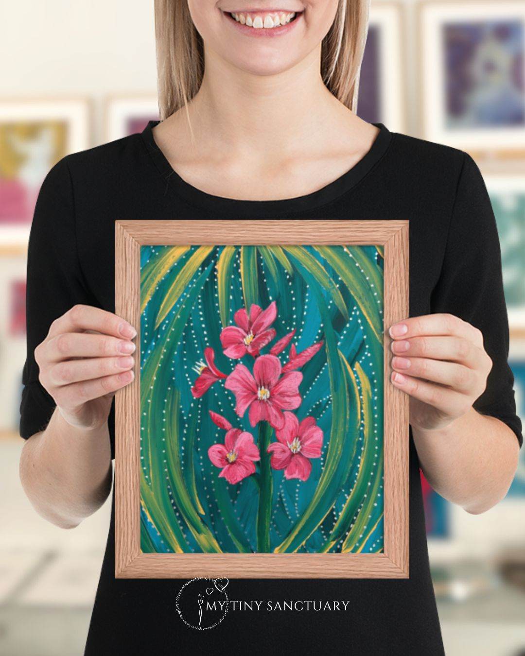 This painting reproduction invites you to enter a vibrant threshold between worlds, encouraging you to cross over and immerse yourself in its botanical beauty.