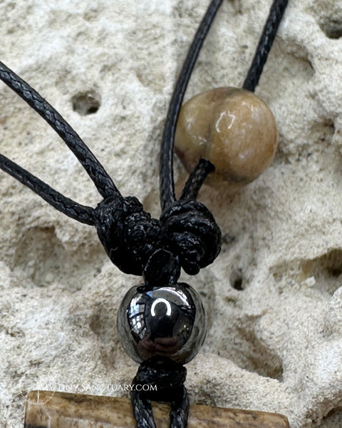 Picture Jasper Necklace with a touch of Hematite - Adjustable
