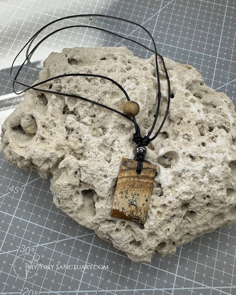 This Picture Jasper Necklace takes you into a windy autumn, on the desert or maybe on the moon.