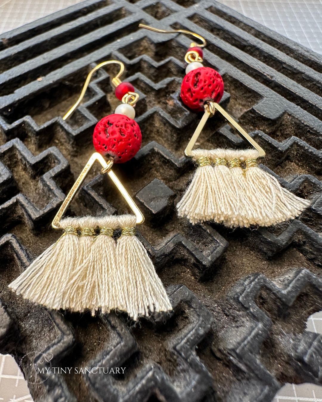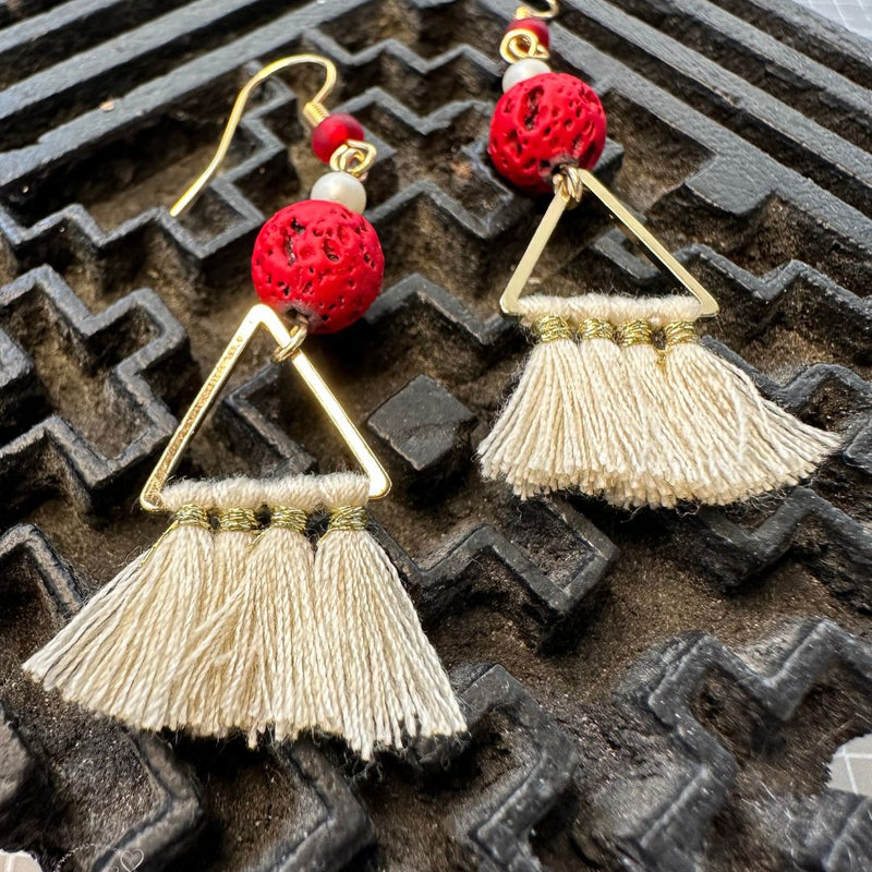 The earrings' length is about long, but as they are handmade, their length can vary by a few millimetres.