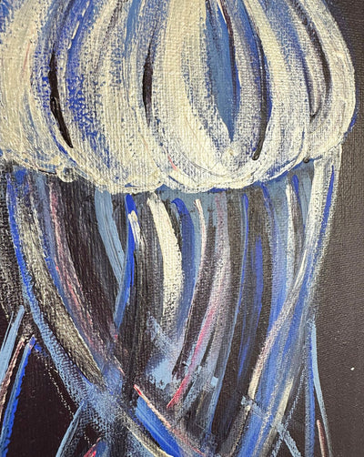 The Sun & Moon Jellyfish Original Acrylic Painting presents a dynamic duo of mesmerising creatures.