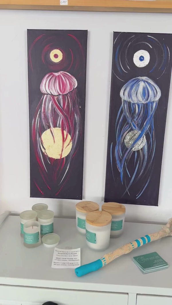 Sun & Moon Jellyfish Original Acrylic Painting Duo Set • 20 x 60 cm