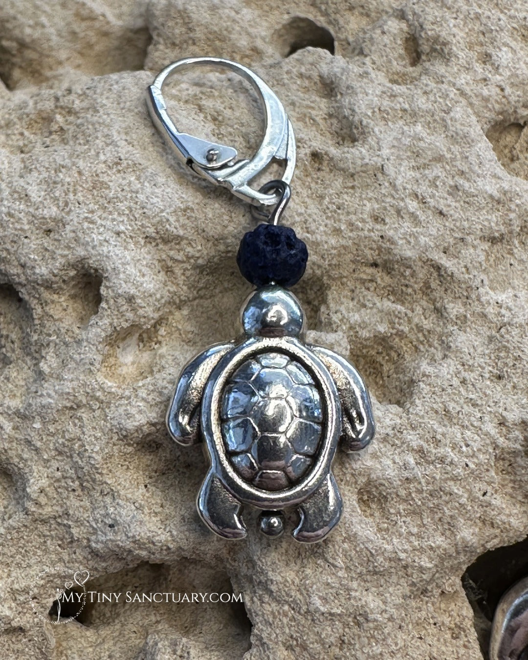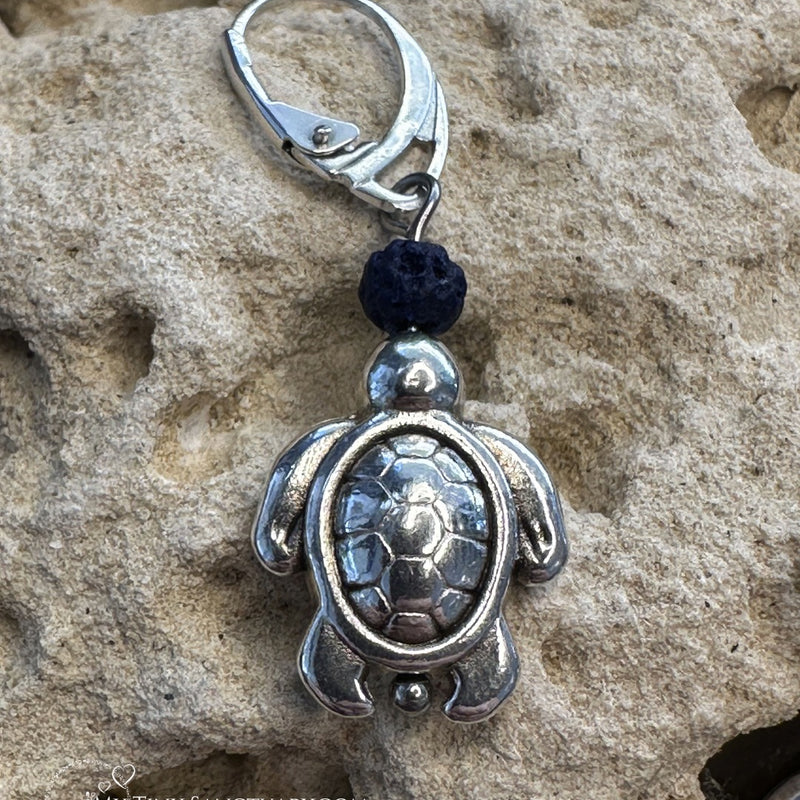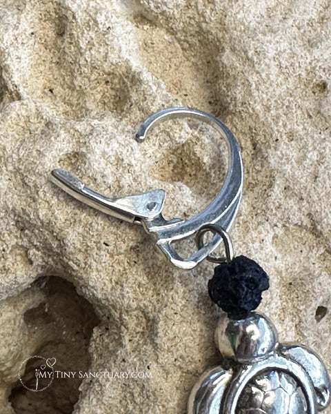 Turtle of Aegina Earrings • 999° Antique silver-plated & Lava Bead